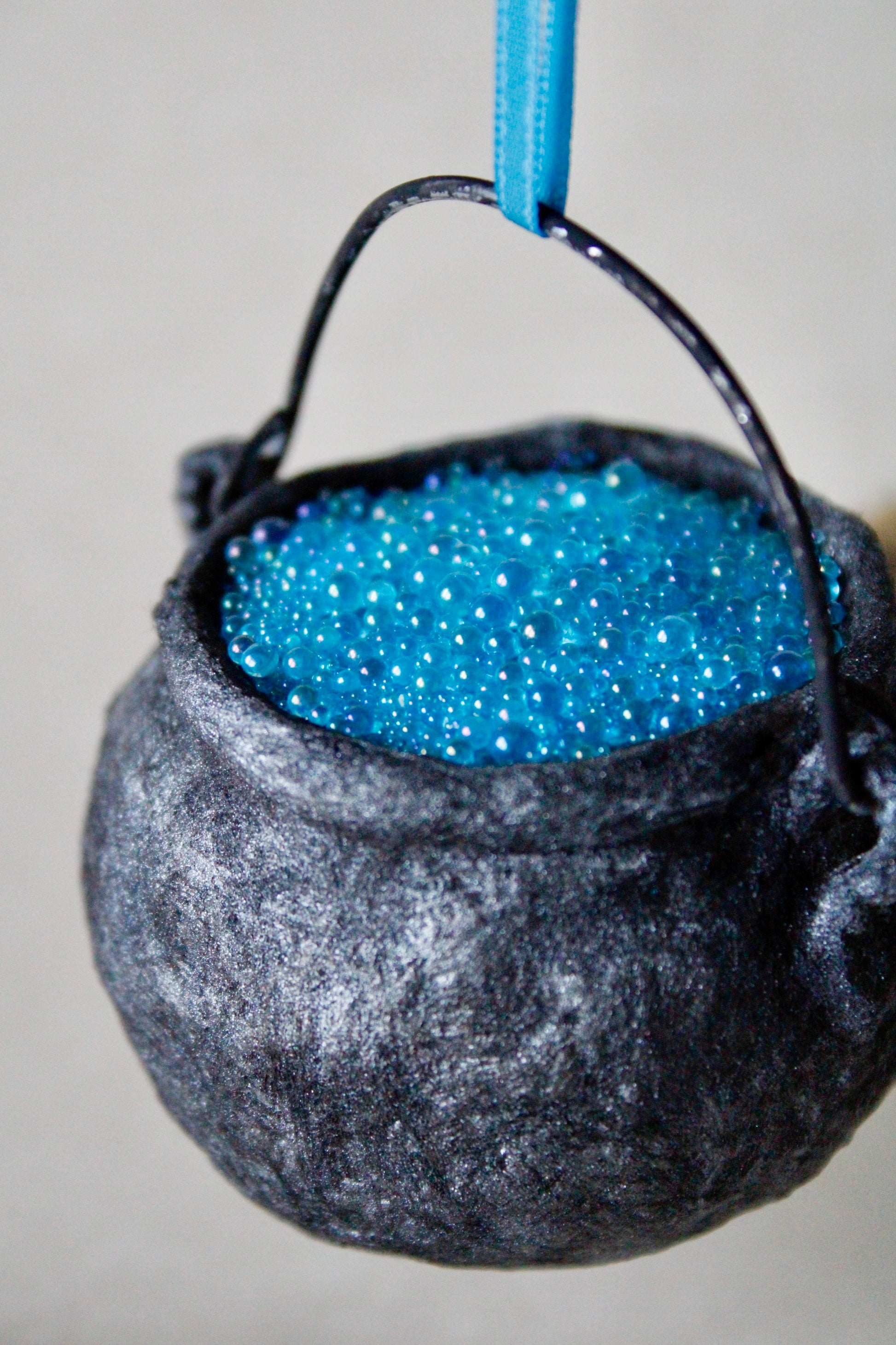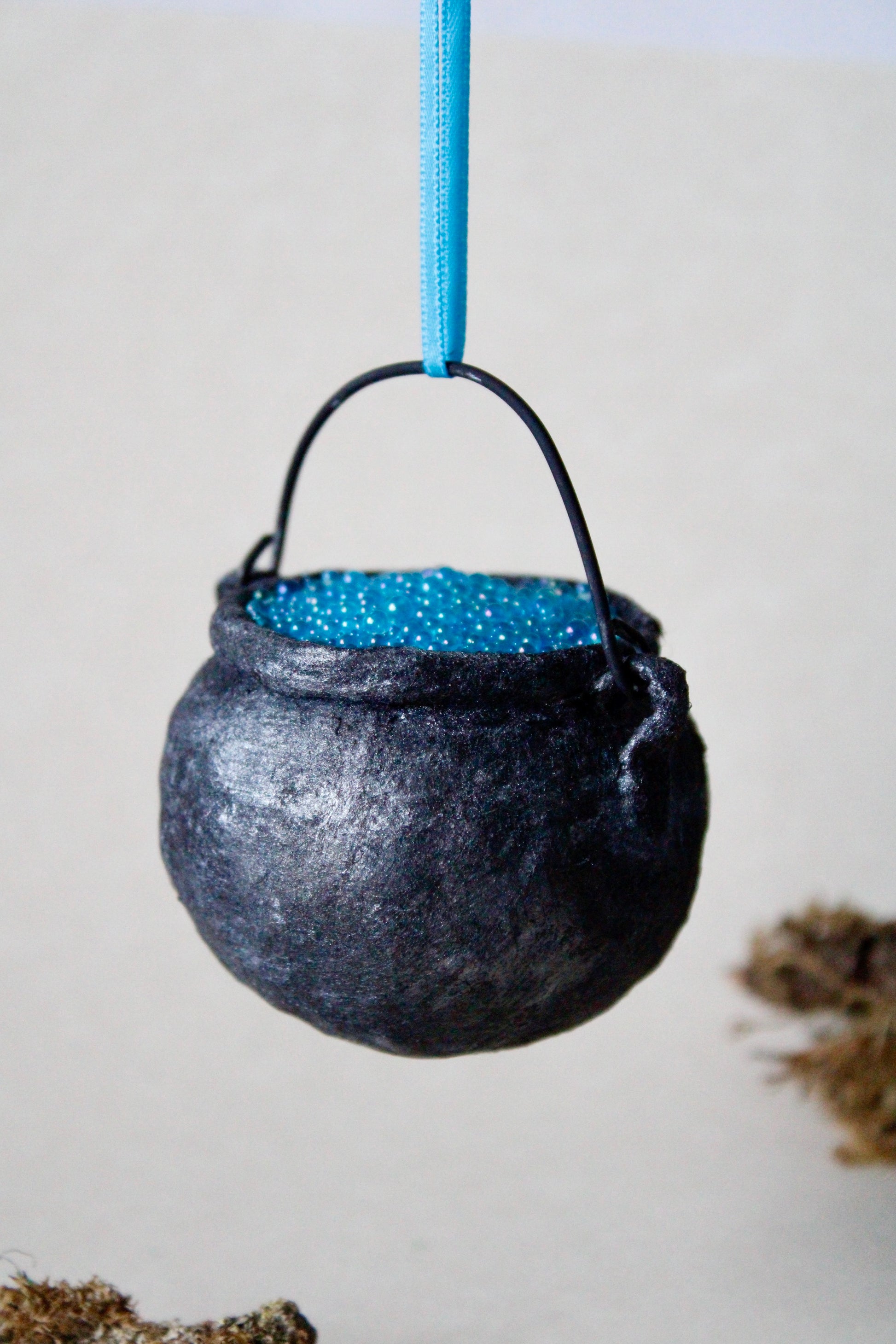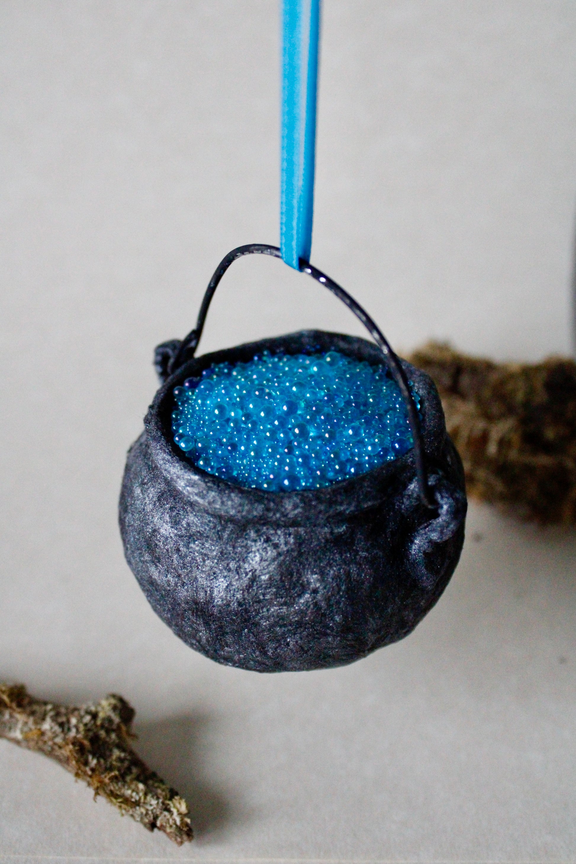 This little cotton cauldron is brewing up a potion but what could it be? A nightcap to encourage sweet dreams? A perfume to attract true love? Or a tried and true tonic for good health? You decide!